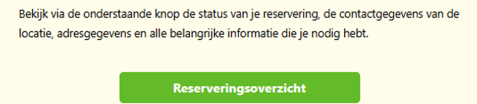 Je reserveringsoverzicht kun je ten alle tijden bekijken via de groene knop die je in e-mail bevestigingen ontvangt en via de link die bij vrijwel iedere SMS correspondentie wordt verstuurd.